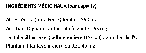 Si vous devez prendre des antibiotiques, espacer de deux heures l’utilisation de ce produit pour ne pas nuire aux bactérie lactiques contenues dans ce produit. Cesser l’utilisation et consulter un praticien de soins de santé si des symptômes de troubles digestifs (ex: diarrhée) apparaissent, s’aggravent ou persistent au-delà de 3 jours. Garder dans un endroit frais et sec. Ne pas utiliser si le sceau est endommagé ou manquant. Garder hors de la portée des enfants.
