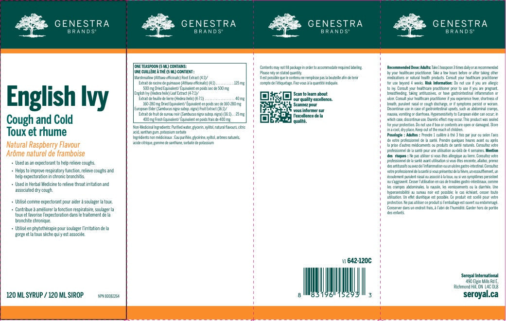 English Ivy Cough and Cold est une combinaison délicieuse d’herbes utilisées traditionnellement pour soulager les symptômes associés à la toux et au rhume. Il fournit du lierre commun qui, comme démontré dans des essais cliniques, soulage la toux, favorise l’expectoration et améliore la fonction respiratoire chez les malades qui ont une bronchite chronique. La guimauve, herbe mucilagineuse, contient des polysaccharides qui recouvrent le revêtement muqueux qui enduit les voies respiratoires. Des recherches cliniques appuient son utilisation traditionnelle en phytothérapie en tant qu’émollient pour soulager l’irritation de la muqueuse du pharynx et la toux sèche qui y est associée. English Ivy Cough and Cold contient aussi du sureau noir, herbe reconnue pour sa forte teneur en anthocyane. Offert avec un délicieux arôme de framboise naturel, English Ivy Cough and Cold est un moyen pratique de soulager les symptômes de la toux et du rhume.