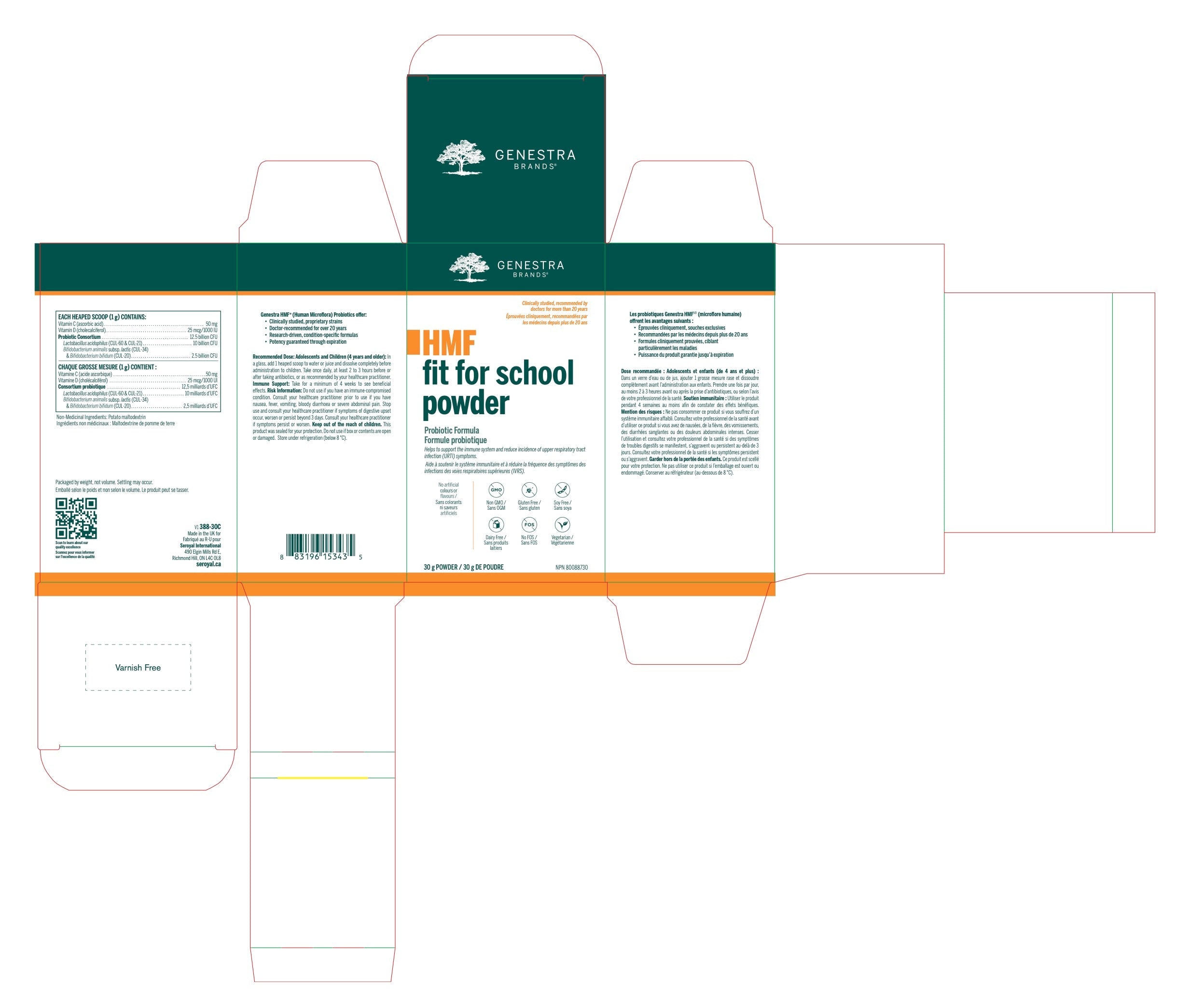 HMF Fit For School Powder comprend une combinaison de souches probiotiques issues de la recherche et de vitamine C qui aide à réduire l'incidence des symptômes des infections des voies respiratoires supérieures chez les enfants. Dans le cadre d'un récent essai clinique, 57 écoliers ont reçu de manière aléatoire un comprimé placébo ou les souches probiotiques incluses dans la formule de HMF Fit for School Powder en plus de 50 mg de vitamine C par jour pendant six mois. La fréquence des sympômes d'infection des voies respiratoires supérieures a diminué de 33 % chez les enfants du groupe probiotique plus vitamine C, et le taux d'absentéisme à l'école a diminué de 30 %. Chaque cuillerée contient également 25 mcg (1 000 mcg UI) de vitamine D, qui procure un soutien immunitaire supplémentaire et un apport adéquat en vitamine D pour favoriser un développement osseux sain.