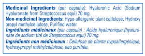 L'acide hyaluronique est un polymère naturel présent dans tous les tissus du corps. Il est particulièrement concentré dans la peau et le liquide synovial et est constitué d'unités de N-acétyl-D-glucosamine et de D-glucuronate distribuées en alternance. Les fonctions de ce polymère incluent l'attraction et la rétention de l'eau dans la matrice extracellulaire des tissus et dans le liquide synovial, ce qui contribue à soutenir la santé des articulations. Dans la nature, l'acide hyaluronique est un composé à poids moléculaire élevé dont la taille varie de 500000 à 6 millions de daltons, ce qui est trop grand pour être absorbé dans l'intestin grêle. L'hyaluronate de sodium constitue une source d'acide hyaluronique de faible poids moléculaire produit par fermentation. Lors d'une étude pharmacocinétique, l'administration orale de cette forme d'acide hyaluronique a mené à son incorporation dans les articulations, le tissu conjonctif et la peau, avec une affinité particulière pour les articulations cartilagineuses. En ce qui concerne les articulations, l'acide hyaluronique soutient particulièrement une lubrification saine et l'absorption des chocs. De plus, des études in vitro démontrent que l'acide hyaluronique module la production de prostaglandine, offrant ainsi un soutien supplémentaire pour les fonctions articulaires.